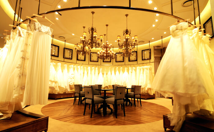 世界中からセレクトされたインポートドレスが並ぶホテル専属のドレスショップ。運命の一着との出会いを。