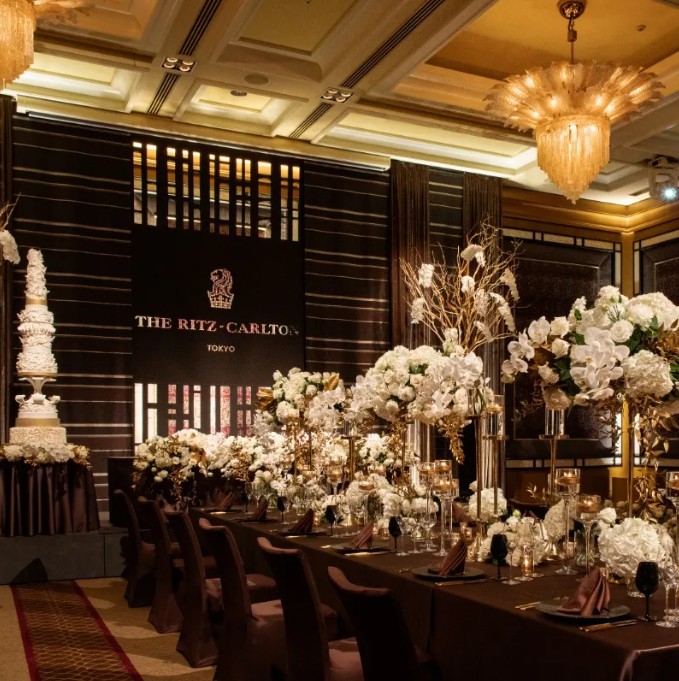上質で格調高い空間に煌めくシャンデリアが印象的なザ・リッツ・カールトン グランドボールルーム。新郎新婦おふたりの想いが形になった直前コーディネートをご内覧いただけます。