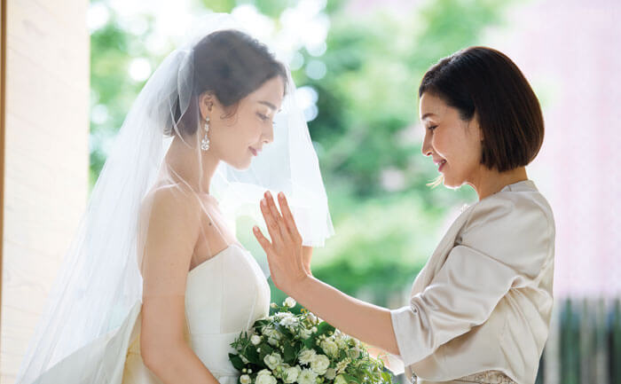 大好きな母からの愛情こもったベールダウン。清らかな雰囲気のなかでゆったりと幸せをかみしめて。