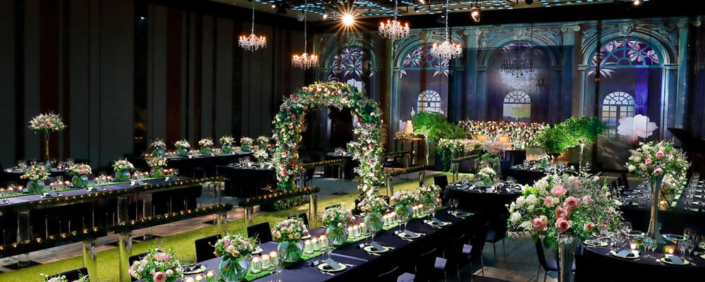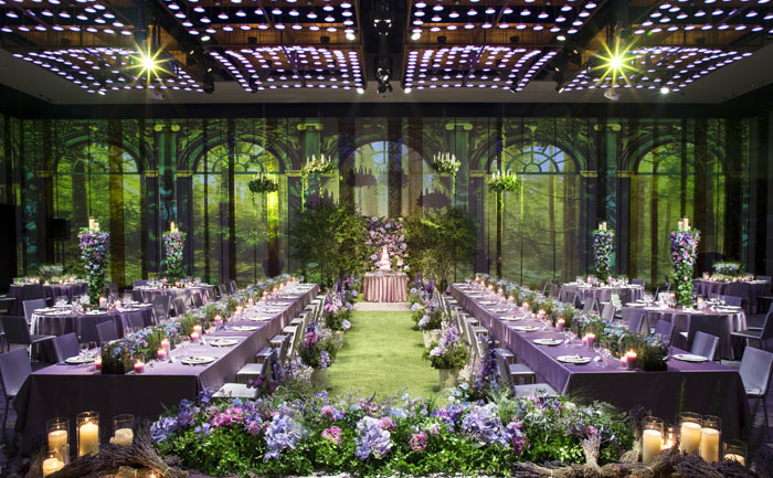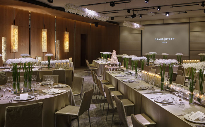 常に時代の先端を行く街・六本木に位置し、ひときわ目を惹く「グランド ハイアット 東京」は、世界的ブランドの名にふさわしいラグジュアリーホテル。洗練されたインテリアで統一された館内には、至るところにアート作品が配され、訪れる人々の感性を刺激してくれる。日本の伝統的な美意識が息づく白木の神殿や、16mもの高さの天井から自然光が降り注ぐチャペル、緑に溢れたプライベートガーデンなど、ウエディングをドラマティックに彩る空間が豊富に揃うのも魅力。