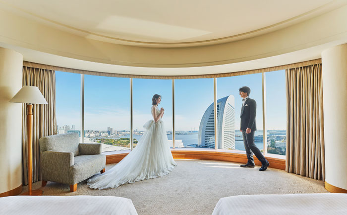 結婚式の前後は、大観覧車を間近に臨むバルコニーを備えた客室で、贅沢な2泊3日のホテルステイを楽しんで。