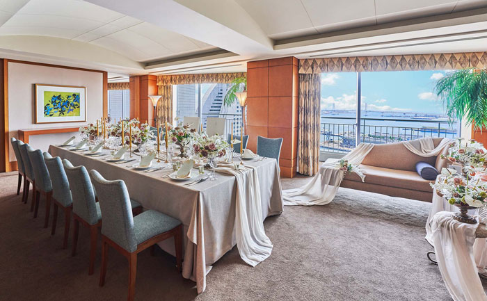 最上階に位置する「パシフィックルーム」。横浜の絶景でおもてなしするプライベート空間。