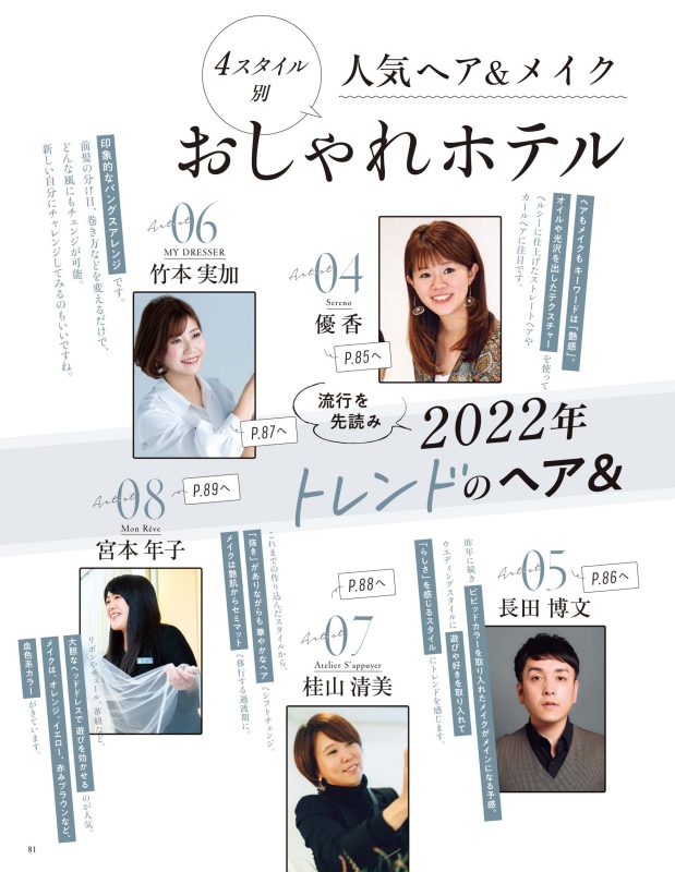 【4スタイル別】人気ヘア&メイクアーティスト8名の競演