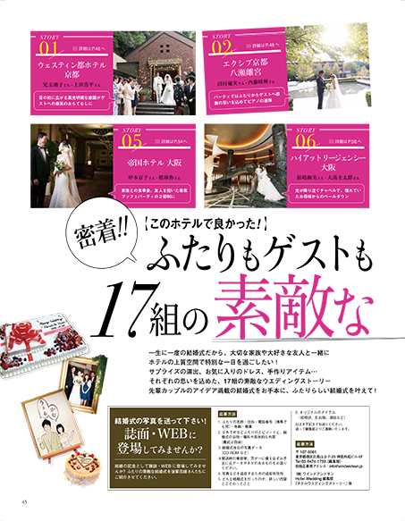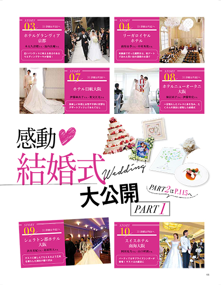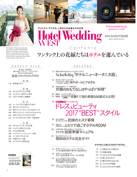 開業30周年を迎えるホテルだからこそ叶うThe Hotel Wedding「ホテルニューオータニ大阪」 時を超えて愛がつながる場所 かけがえのない瞬間~TSUDOI~を約束 神戸ポートピアホテル 料理長渾身のメニューを徹底紹介! 究極のおもてなしはやっぱり“料理” このホテルで良かった!ふたりもゲストも感動♡ 密着!!17組の素敵な結婚式大公開!