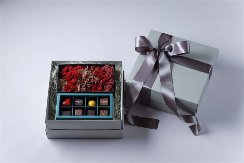 チョコレートにプリザーブドフラワーをセットにした限定ボックスも
