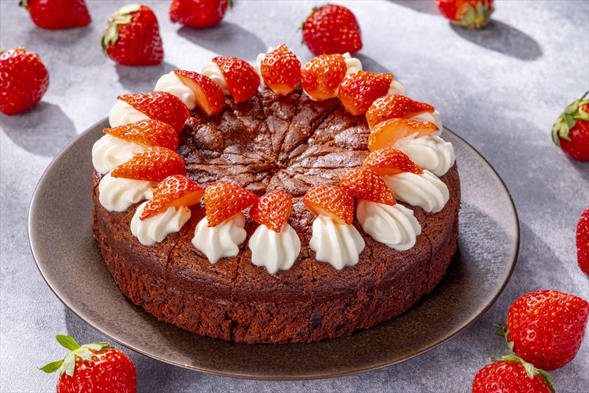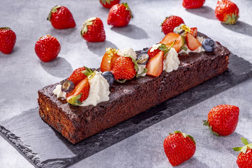 ガトーショコラだからこそシェフがこだわったカカオ風味の強いビターチョコレートをたっぷり使い、鮮度高い美濃娘をアクセントにトッピング。濃厚なカカオの風味を堪能して。