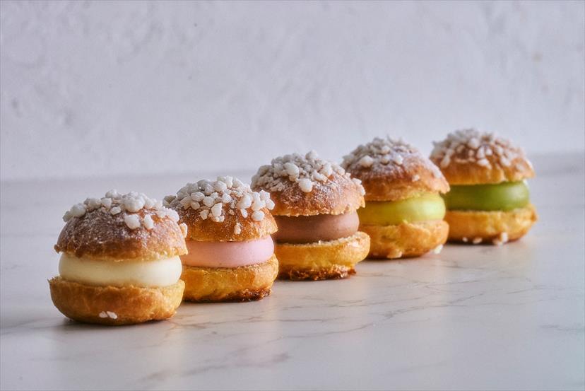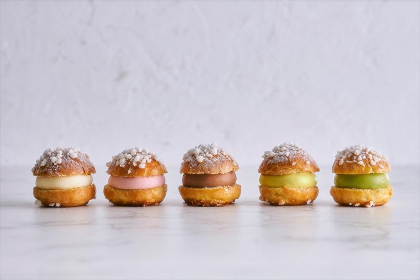 サワードゥスターターを使用した程よい酸味を持つセミハードのブリオッシュは、噛むほどに広がる小麦の香りと余韻、軽やかな食感との絶妙なバランスが特徴。甘さ控えめな生地が、6種類のフレーバーそれぞれのクリームの個性を引き立て、豊かな味わいを際立たせます。
