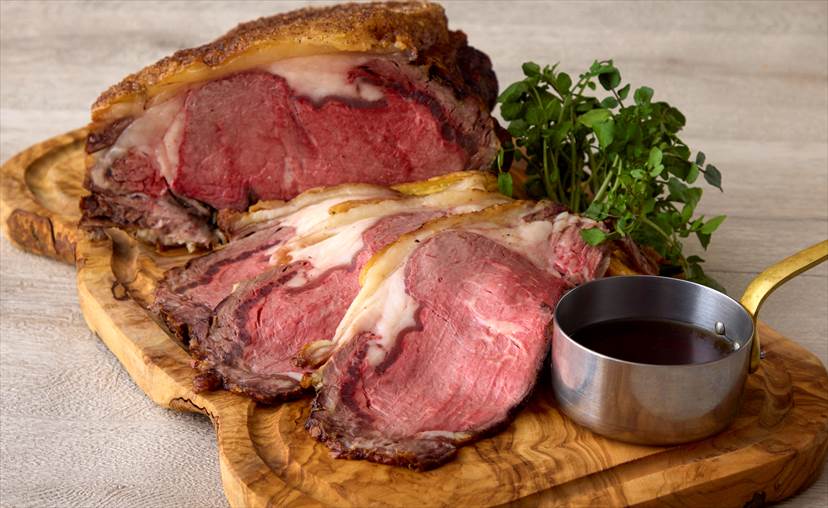 目の前でカットする「国産牛ローストビーフ 西洋わさび添え」