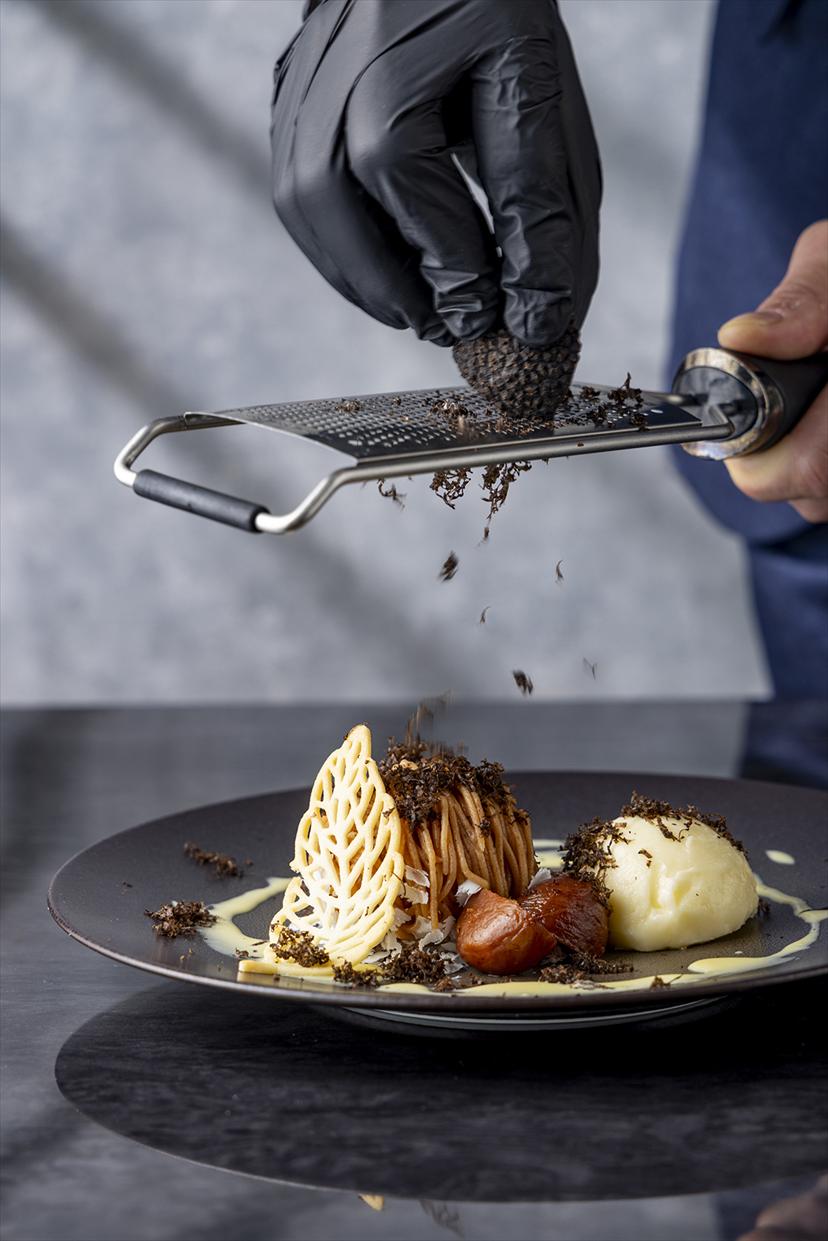 また、より贅沢な“極上体験”を演出するプレミアムプランでは、目の前で芳醇な黒トリュフを削って仕上げる「トリュフモンブラン」を用意。香り高く口の中でとろけるような極上の一皿で五感を満たす特別なひとときを堪能できる。