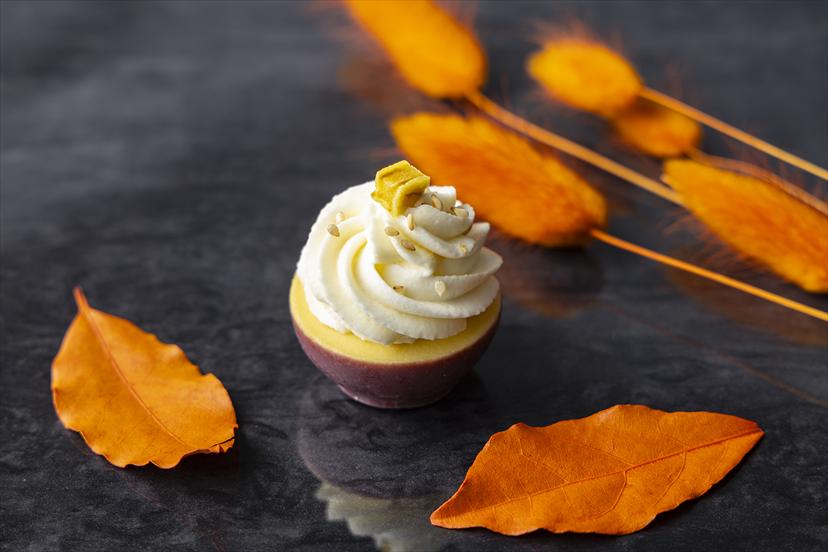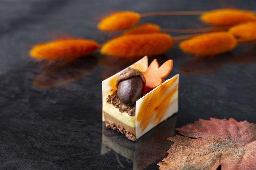 今季は栗、芋、かぼちゃといった愛される秋の素材をふんだんに使用しトリュフの風味を加えるなど、見た目にも味わいにも“実りの秋”を感じられるラインナップ。彩り豊かなスイーツとセイボリーが織りなす、紅葉のように深まる季節の味覚を楽しめる。