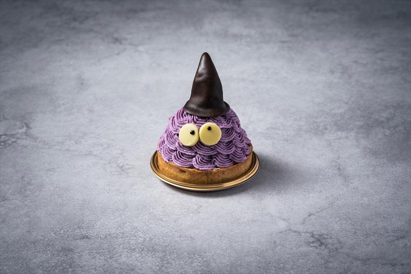 ハロウィンシーズンにぴったりの魔女帽子を被ったモンスターのモンブラン。さっぱりとした甘みの紫芋クリームにバターを合わせ、風味豊かに仕上げた。中には栗をたっぷりと使用したカスタードクリーム、土台は紫芋のダマンドを敷いたタルトを使用し、和素材を活かした秋の味覚を堪能できるケーキに。