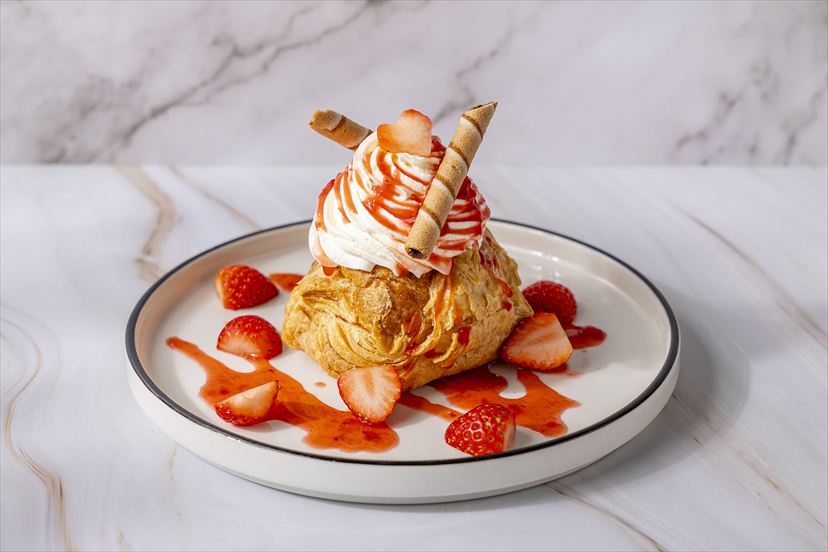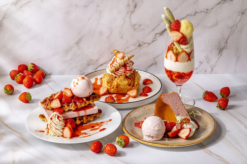 館内1Fのザ・ジョーンズ カフェ&バーでは、2025年12月26日(金)から2026年2月28日(土)まで、フレッシュないちごを楽しむ季節限定スイーツを提供します。人気のクロッフルはいちごの香りを引き立てるほどよい甘さに仕上げ、パフェはいちご本来の瑞々しさをそのまま味わえるつくりに。パイ生地のシュークリームは軽やかな食感が楽しく、ベイクドチーズケーキは上品ないちごの風味をしっかり感じられます。