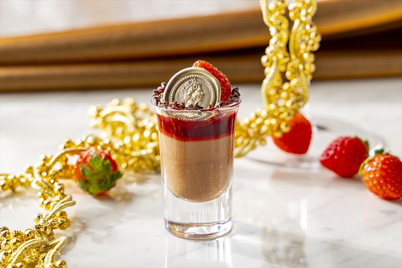 とろけるチョコレートクリームに、みずみずしいいちごゼリーを合わせた贅沢なヴェリーヌ。幸運を呼ぶと呼ばれるペニーの形のチョコ付きです。