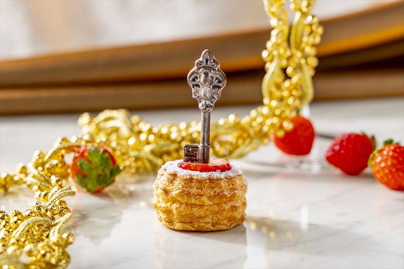 運気がUP? 鍵のチャームが付いたサクサクのクロワッサン生地の中に、甘酸っぱい自家製いちごジャムをたっぷりとはさみました。