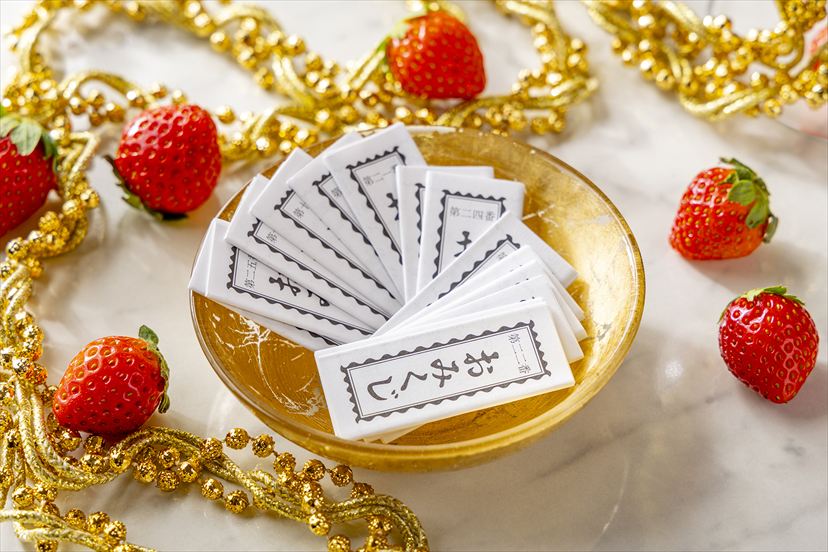 キンプトン新宿東京のアフタヌーンティーは、みずみずしいいちごとチョコレートを組み合わせたスイーツが主役。ペニーやクローバー、鍵など幸運を象徴するモチーフを随所に取り入れ、見た目にも気分が高まる構成です。おみくじのプレゼントも用意され、新年の運試しとしても楽しめます。