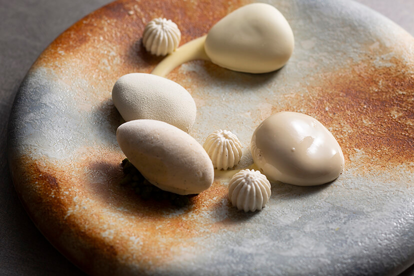 シグネチャーメニューには、 空豆や鱧、 アスパラガスを中心とした旬の食材や、 神戸・六甲の「弓削牧場」が放牧している牛のミルクで手作りで製造しているフレッシュチーズ、 六甲シャンピニオン、 近海で捕れる太刀魚、 奈良県和牛雌牛フィレなどの関西の素材を中心にご用意。 近年、 食の感度が高いフーディーにも改めて見直されている、 旬の食材を取り入れることでの健康への良い影響や、 地産池消を楽しむ贅沢さを存分にコースに取り入れました。