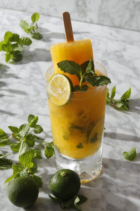 濃厚な味わいのフレッシュマンゴーに、ライムの代わりにすだちを加えた和テイストのモヒート。マンゴーのアイスバーを豪快にトッピングしました。アルコール・ノンアルコールどちらでもお楽しみいただけます。