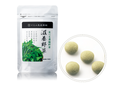 宮古島の指定農場で育てた5 種の国産野草(栽培期間中農薬不使用)をまるごと濃縮したサプリメントの健康食品。食事だけでは不足しがちな、カルシウム、鉄、食物繊維など79種もの栄養素と51種類の国産酵素に加え、身体の戦うチカラをサポートする成分として自然免疫研究で注目される植物発酵パントエア菌LPSも配合。