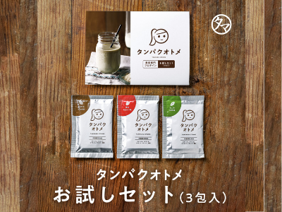 キレイづくりに女性にこそタンパク質(プロテイン)を活用してほしい、美と健康の営業補給のために女性が気軽に楽しく続けられる美容のためのプロテインが「タンパクオトメ」。まろやかカカオ味、博多あまおう味、なごみ抹茶味の人気のフレーバーが入った気軽にトライできるタンパクオトメ3日間お試しセット。タンパクオトメ3日間お試しセット ¥500