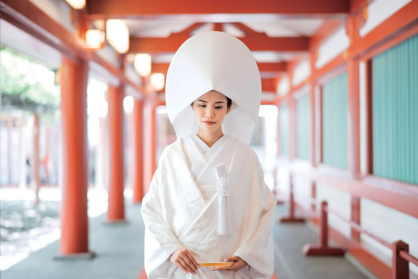 正絹の白無垢に綿帽子をまとい古き佳き日本の花嫁に