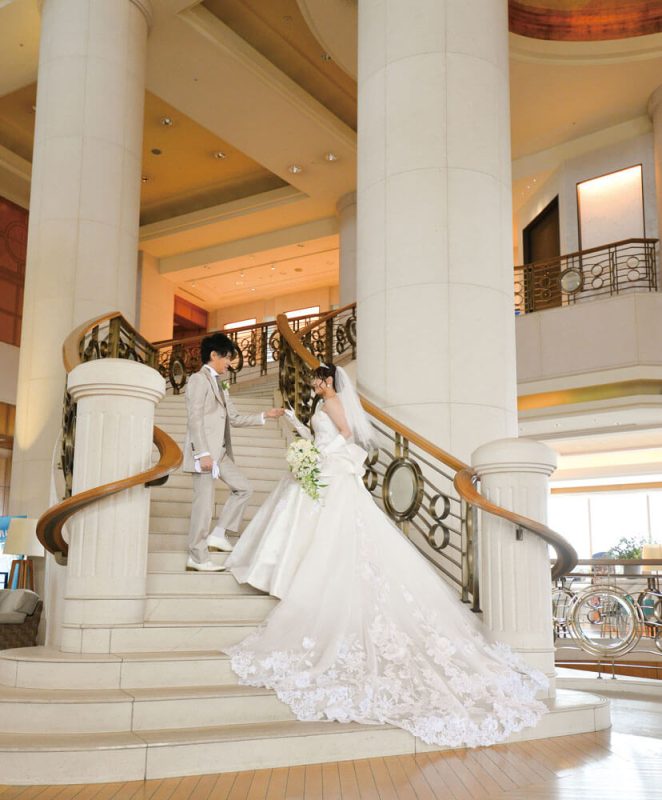 ホテル内のフォトジェニックスポットでは、お気に入りのドレスをまとい撮影を楽しんだ