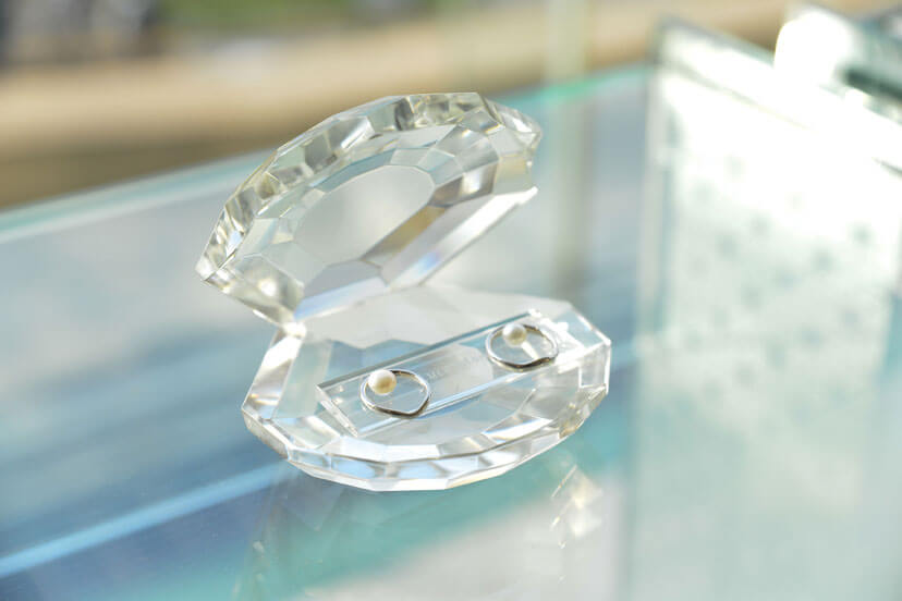 結婚式のテーマ「海」にちなみ、貝殻型のリングピローを準備