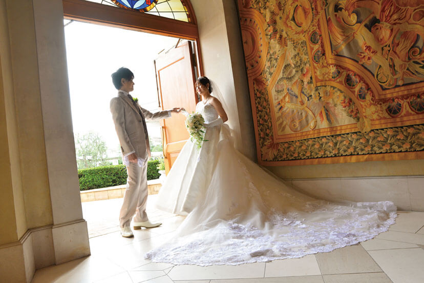 会場決定の決め手になった、海の見える開放感溢れるチャペルにて