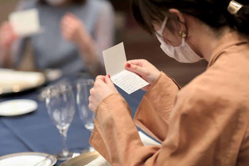 友人ゲスト一人ひとりに感謝を伝える手書きメッセージを添えた席札