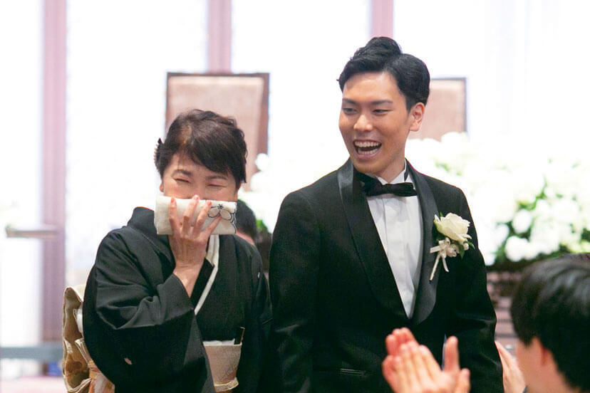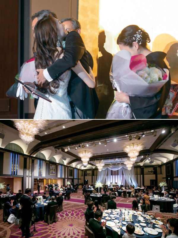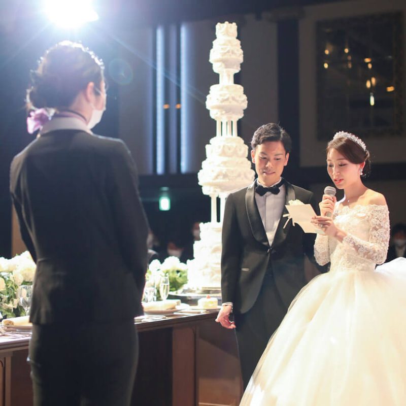 学生時代に出会ったふたり。これまで支えてくれた大切な人たちと歩んできた思い出を振り返りながら1日を過ごせるようにと準備を進めた結婚式。会場を広くし、コロナ対策セットとしてマスク・マスクケース・除菌シートなどを受付で配ったり、クイズをWEB化するなど感染対策にも気を配った。ふたりがこのホテルに決定したきっかけでもあり、開催を延期をした際も、親身に寄り添い支えてくれた担当プランナーにどうしても感謝の気持ちを伝えたいと、披露宴中にサプライズで感謝の手紙を読み、サンクスバイトをする場面も。そんな姿が「ふたりらしい」とゲストが盛り上がった。手作りのプロフィールブック、それぞれの友人からのスピーチ、ゲスト一人ひとりを意識して作成したムービーは、ふたりをよく知ることができ、幸せな一体感を生む演出となった。コロナ禍で会えなかった親戚や友人に久しぶりに会えるその時間をたくさん記録に残しておきたいと2名のカメラマンに依頼。さまざまな角度から撮影した膨大な数の写真1枚1枚が一生の宝物となった。