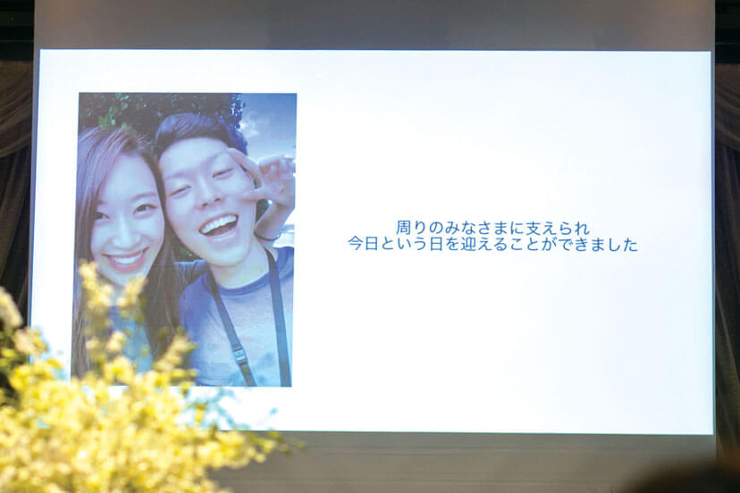 「ゲストと歩んだ道のり」を意識して作成したムービーには、「新郎新婦クイズ」の答えも散りばめた