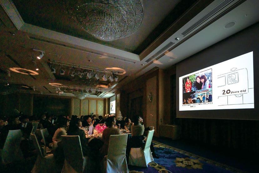 プロフィールムービーではふたりの歩みとともに、両親やゲストとのかかわりも紹介