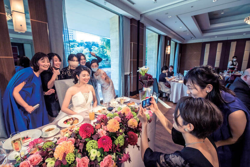 友人たちと記念撮影や会話を楽しみながら和やかなひとときを過ごして