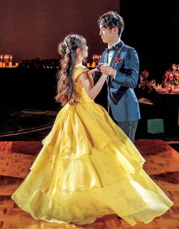 お色直しと見せかけて、実写版美女と野獣の舞踏会シーンを忠実に再現したファーストダンスをサプライズで披露。準備の合間を縫ってダンス教室に通い、家でも練習を重ね本気で臨んだ渾身の演出