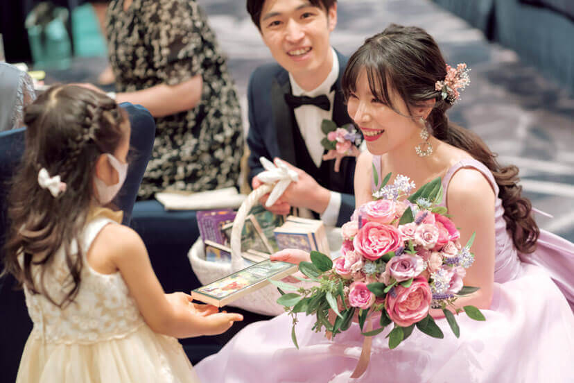 てくれるゲストへ最高のおもてなしを提供したいと思い、料理をアップグレードしギフトにもこだわった。さらに、サーチライトを照らした「シルエット入場」や実写版美女と野獣の舞踏会シーンを再現した「ファーストダンス」、ペンライトやアップテンポな曲でライブ会場さながら盛り上がった「ドレス色当てクイズ」など、ゲストが楽しめる演出を用意した。入場の瞬間湧きあがった拍手や歓声、笑顔、何より「素敵な結婚式に招待してくれてありがとう」「楽しくてあっという間だった」の言葉に、ゲストを一番に考え頑張って準備した甲斐があったと心から喜びを実感した。忘れられない一日を過ごした。