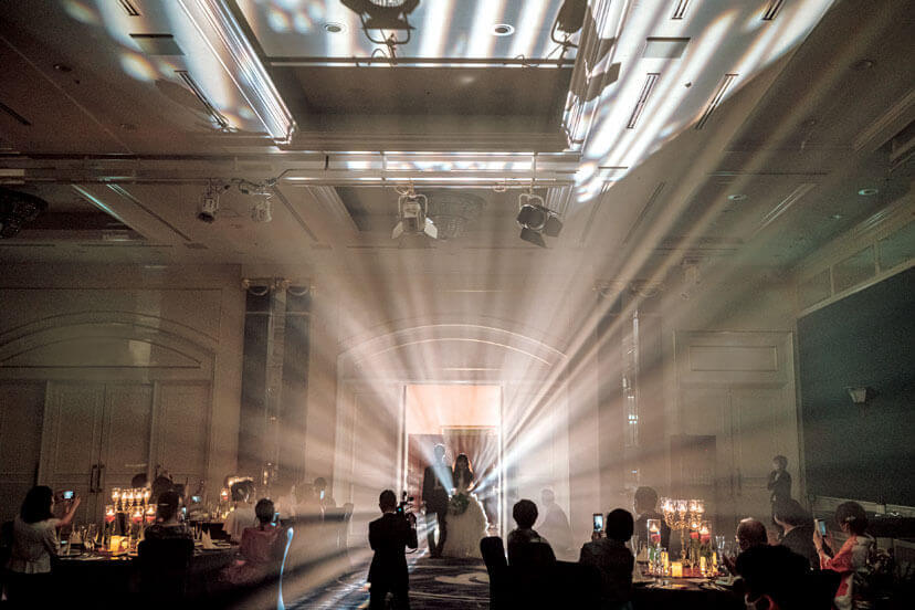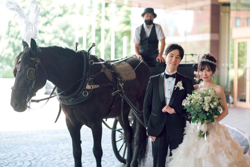式後、祝福するゲストに見送られながらホースパレードへ。ロマンティックなこのホテルならではの演出がゲストからも好評だった