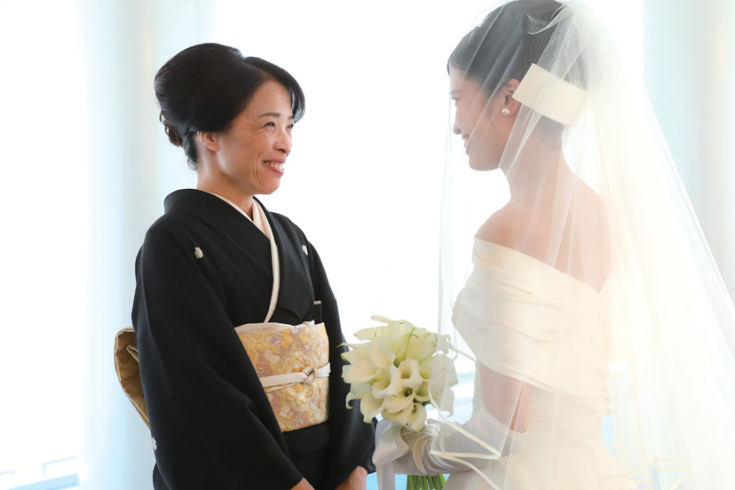 母親からベールダウンをしてもらい「私、結婚するんだ」と改めて実感したという新婦。