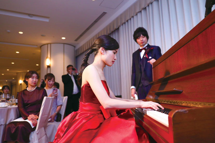 手紙朗読の代わりにピアノの生演奏を披露した新婦。3歳から中学3年まで習っていたピアノを辞めてから「いつかまた佳歩のピアノを聴きたい」と言っていた母の目に涙が浮かぶ感動シーンに。
