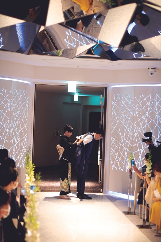 ゲストに祝福されながら退場。