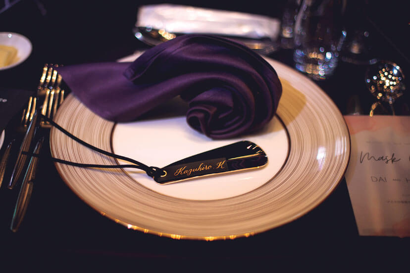 席札代わりに名前入りの靴ベラと鏡を男女それぞれに用意した。