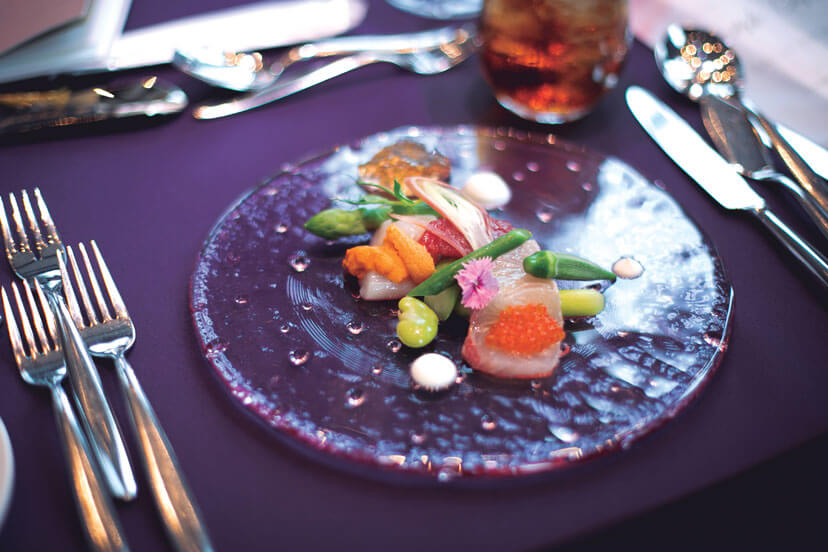 おもてなしの料理には、ロッシーニや雲丹、苺、鯛などふたりの好物のほか、神戸のチーズや山梨の葡萄など出身地の食材をメニューに使用。