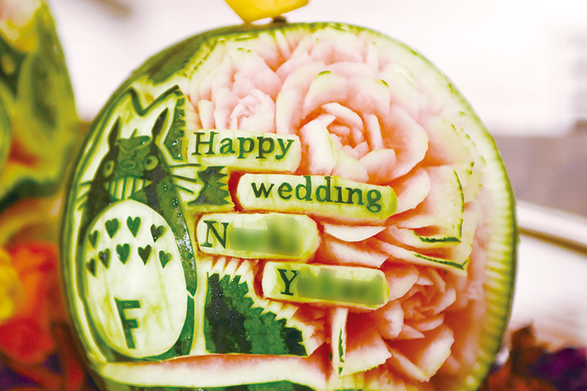 美しい細工を施したウエルカム用のスイカ。Nさん友人からのプレゼント