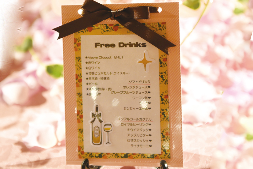 Yさん手作りのドリンクメニューリスト。ゲストが頼みやすいようにと配慮