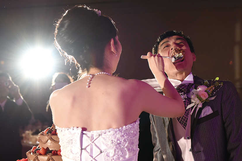 ファーストバイトは恥ずかしかったというYさん。ゲストは一番のシャッターチャンスに