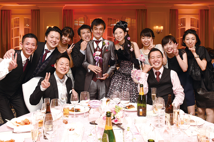 笑顔で記念撮影。ルミファンタジアの演出をしながら、すべてのテーブルを回った