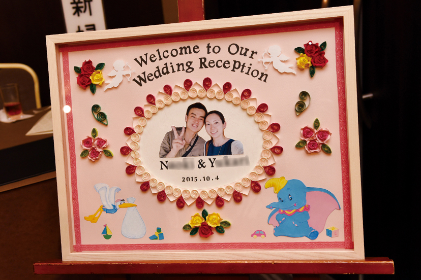 Yさんが好きなキャラクターが登場するウエルカムボードはお母様の手作り