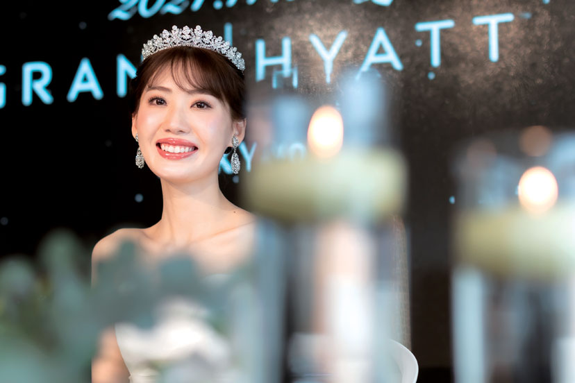 祝宴は最新の照明技術も魅力の「タラゴン」で。大きなティアラが輝き、ドレス姿をより美しく魅せる。