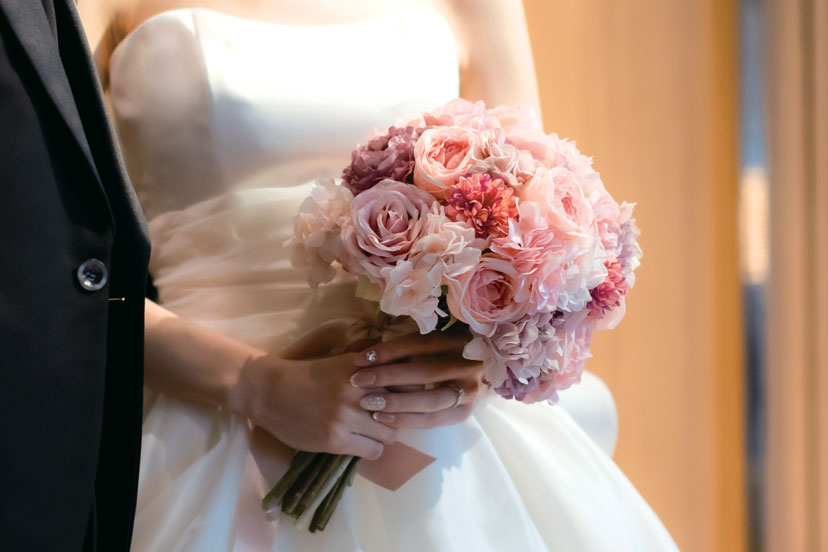 新婦の花好きは母譲り。ピンクの花束に両親への感謝を込めて。