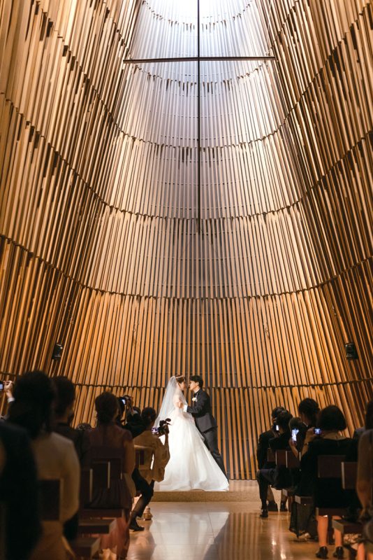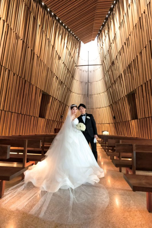 木の温もりと優しい香りに包まれる「グランド チャペル」での人前式。