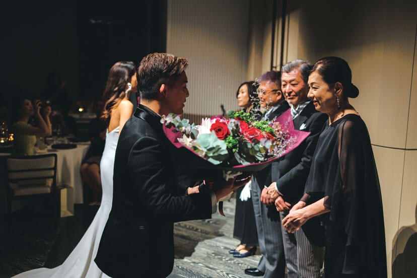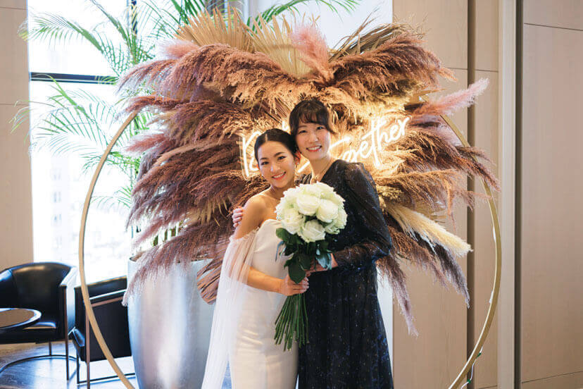 3日前にフローリストと一緒に制作したオリジナルブーケを、お互いの母親に「これからよろしくお願いします」と気持ちを込めてプレゼント。