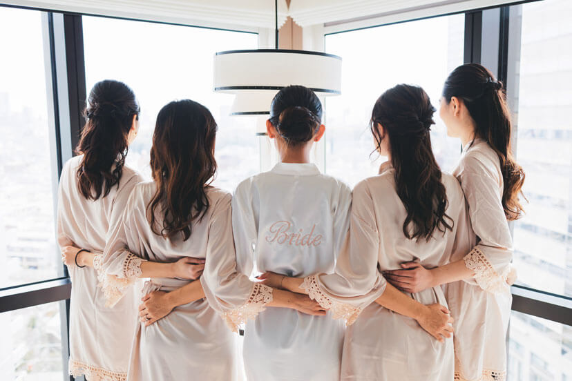 新宿の街を見下ろすブライズルームでブライズメイドと最良の日をスタート。